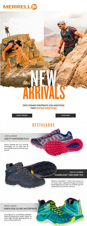 Each email prioritized clear content hierarchy, strong visual alignment with Merrell’s outdoor identity, and prominent call-to-action placement to guide users toward product discovery. The designs were structured to perform consistently across major email clients and devices while maintaining brand consistency with the broader e-commerce experience.